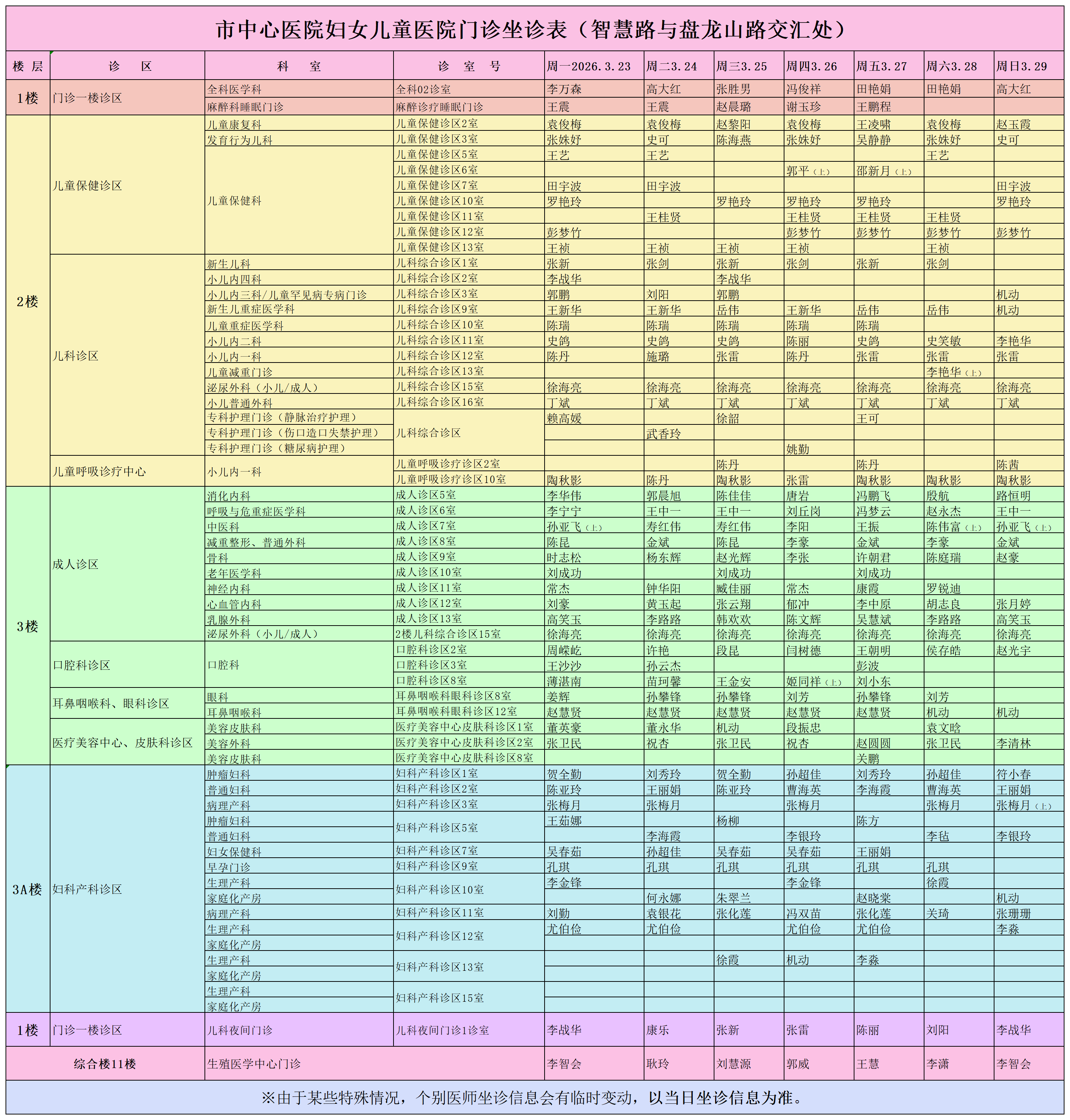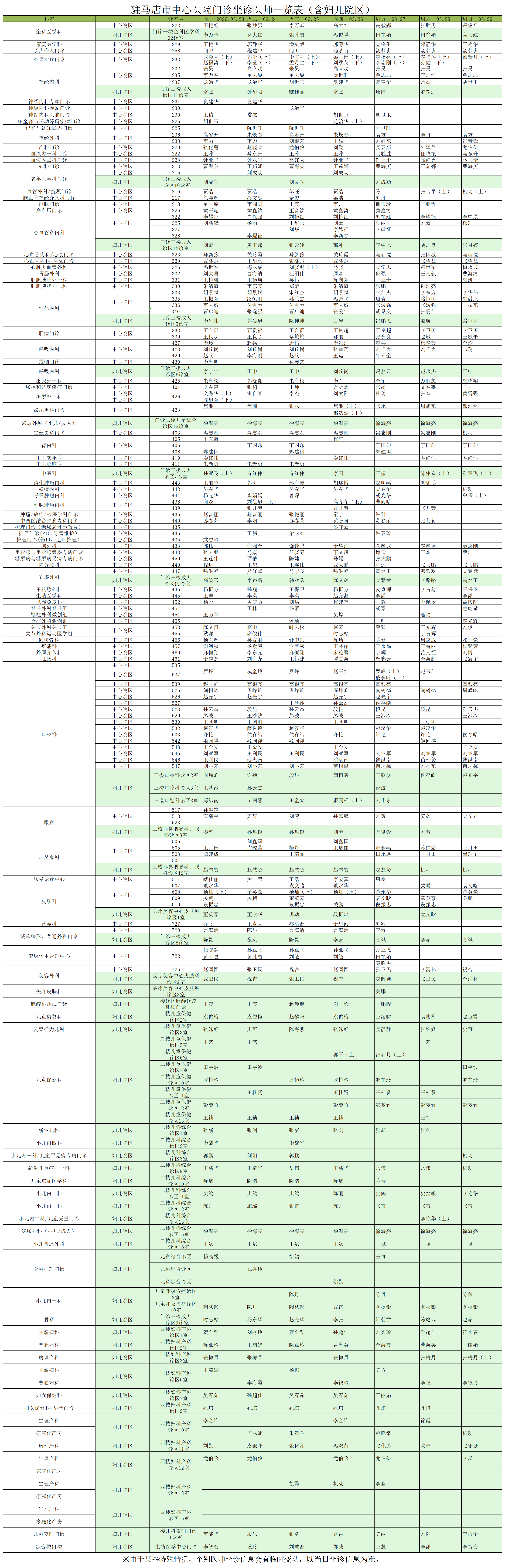 驻马店市中心医院门诊坐诊信息一览表(含妇儿院区)