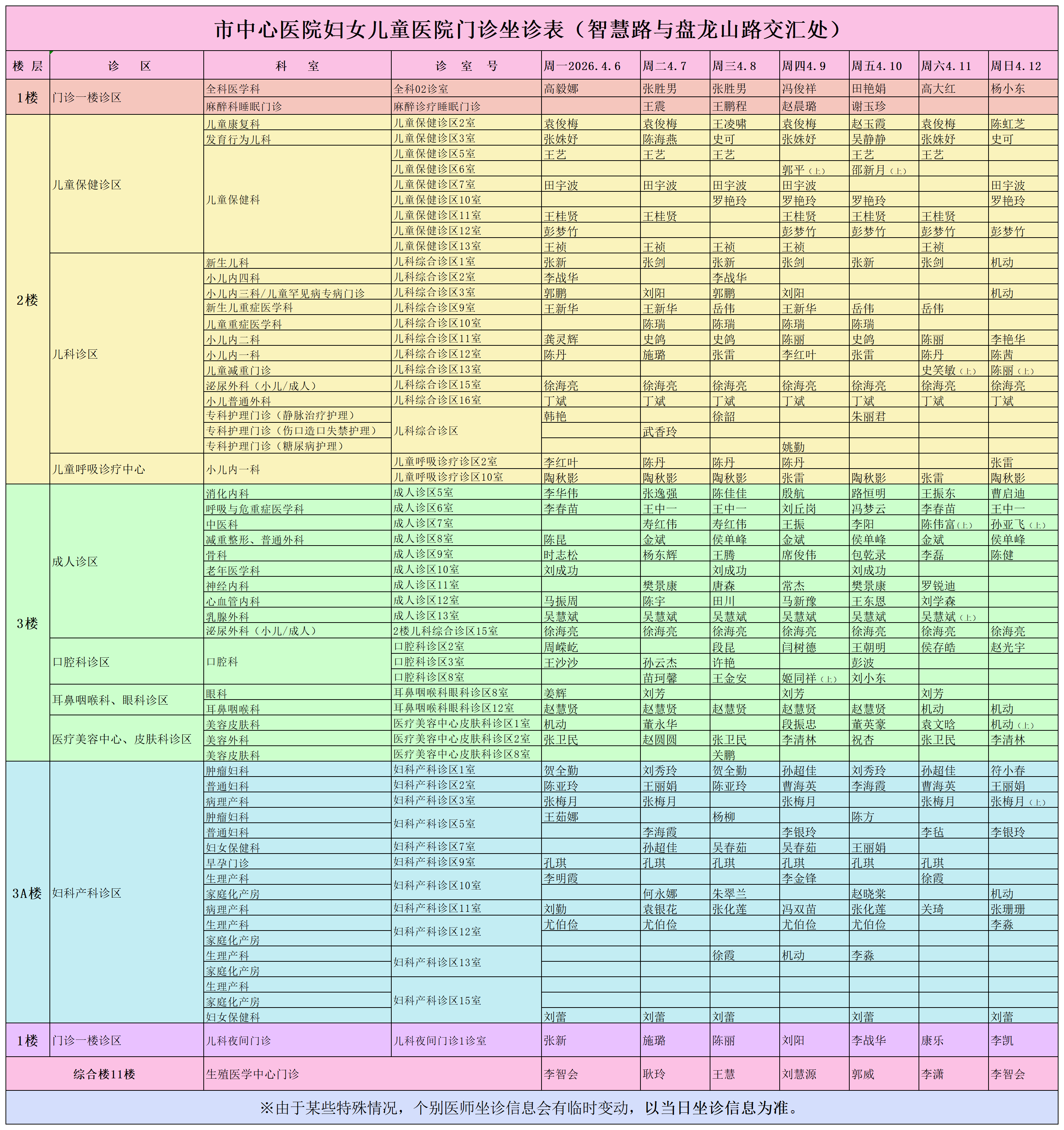 驻马店市中心医院门诊坐诊信息一览表(含妇儿院区)